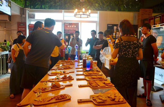 为了让与会人员切身感受水吧的特色经营,汤尼斯更是带来了一场餐饮视觉与味觉的盛宴,在发布会环节先后发布了饮品、简餐、小吃、汉堡四个系列多款新品,所有与会嘉宾现场观摩品尝。