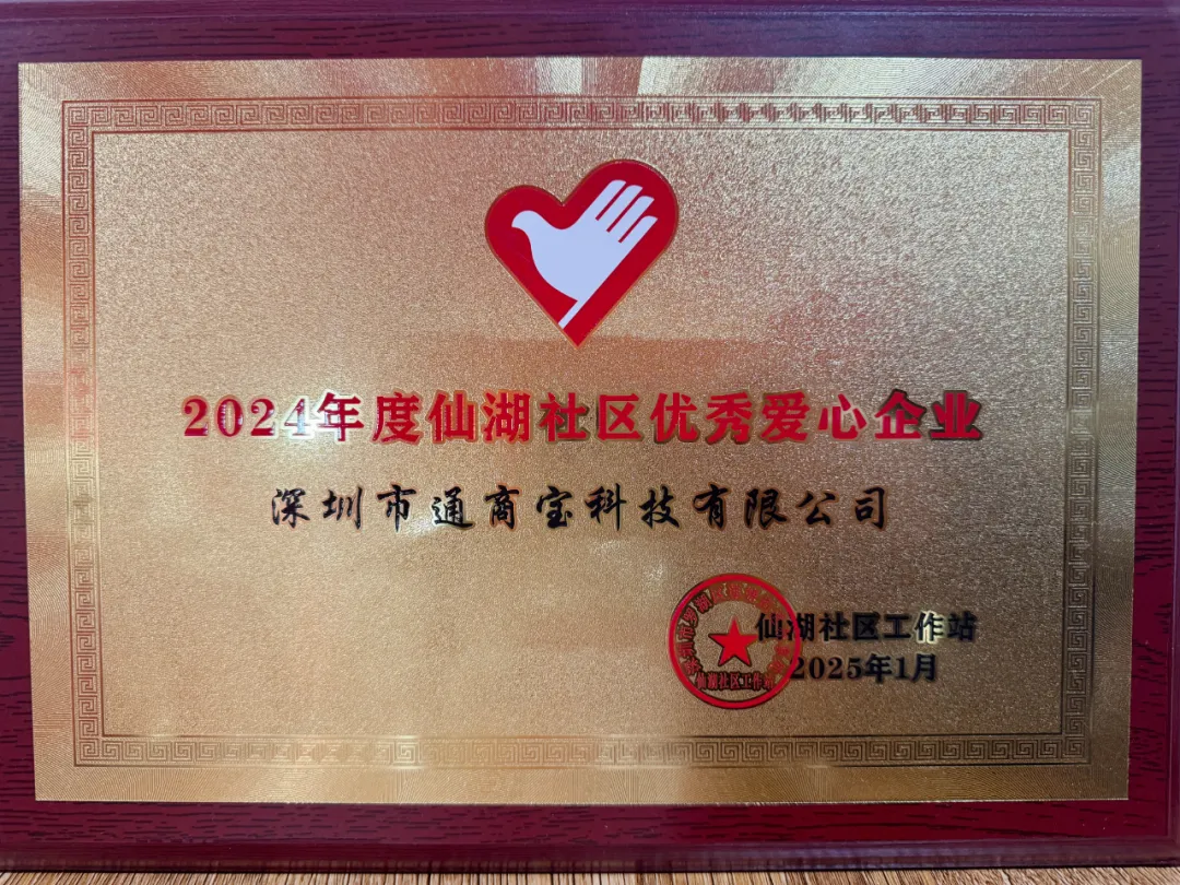 2025年1月8日,深圳市罗湖区莲塘街道仙湖社区在党群服务中心开展了以“党建引领聚合力 社区治理谱新篇”为主题的志愿者表彰大会。深圳市通商宝科技有限公司荣获仙湖社区2024年度志愿者表彰大会“优秀爱心企业”称号。